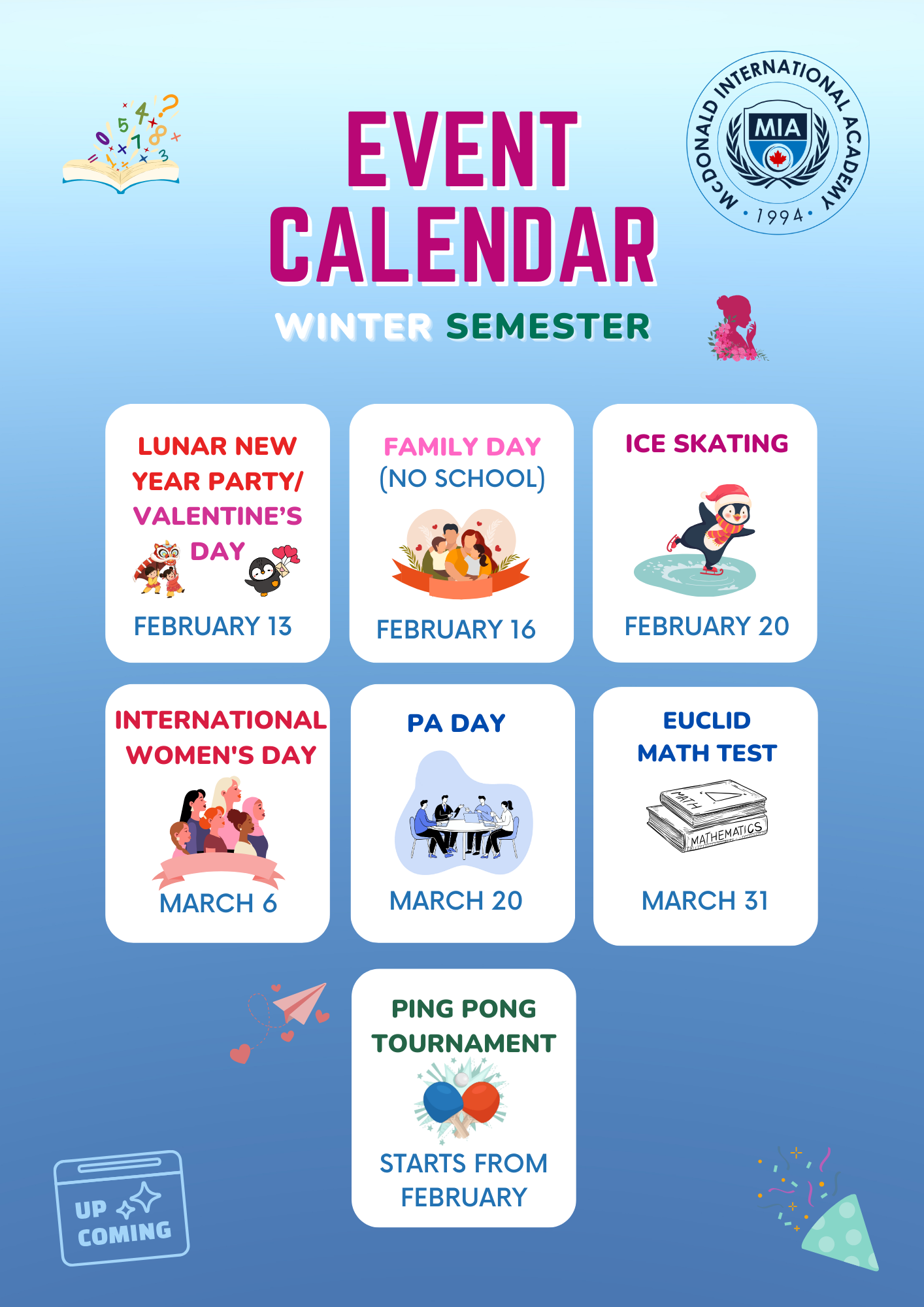 MIA’s active school community is always buzzing. We ensure that students always have a wide range of social and academic opportunities throughout the year. Our events and activities encourage students to get to know each other, make new friends, and familiarize themselves with Canadian culture. In addition, we offer tons of clubs which nurture student’s interests and help them gain valuable pre-requisites necessary for university or college applications.