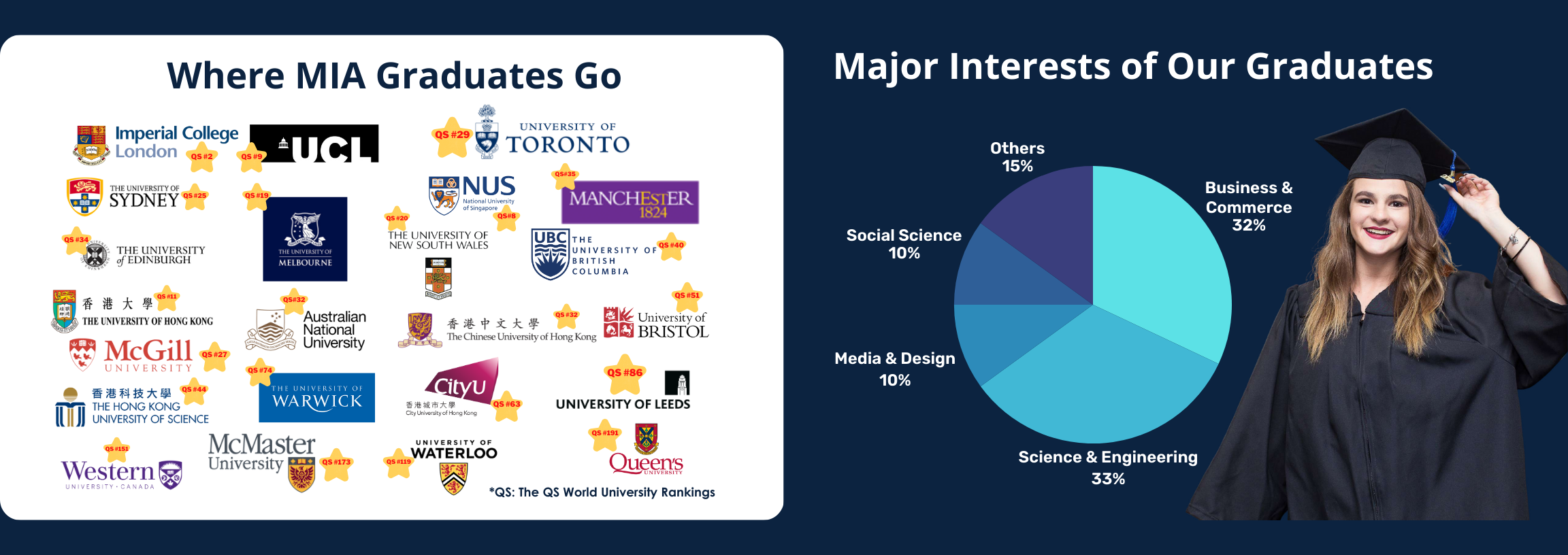 Since our inception, over 20,000 students from over 50 countries have graduated from MIA and have successfully been accepted into universities and colleges in Canada and all around the world.